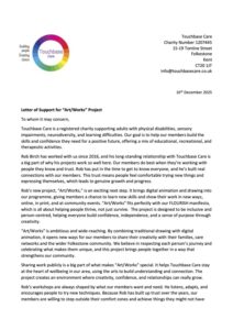 I have worked closely with Touchbase Care since 2016 and have built a close working relationship with the organisation. In 2025, they developed their FLOURISH manifesto (https://www.touchbasecare.org/about-us/) that looks to establish their work with their members going into the future. I am please to announce that my work and this project has been included within that philosophy and look forward to developing further projects and work in the future.